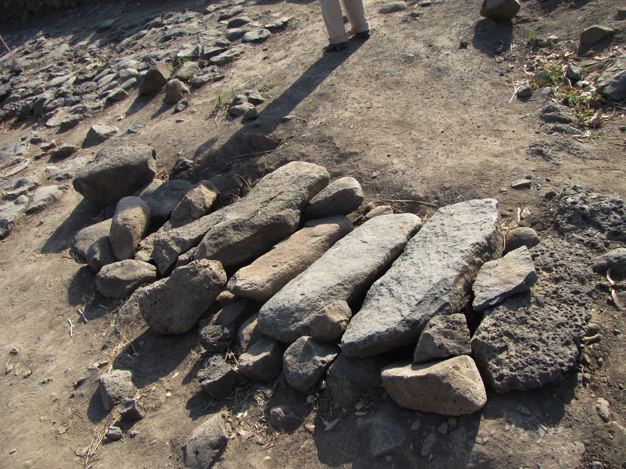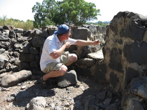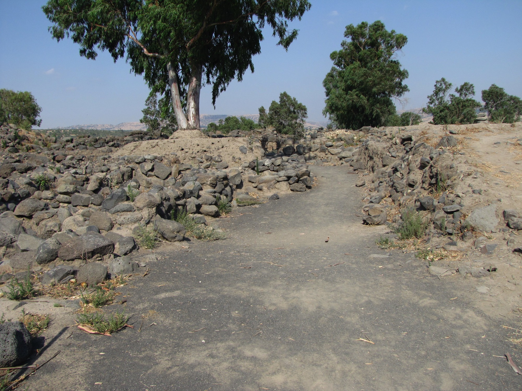 The east gate leading into the Old Testament city of Geshur which was the capital of the kingdom of Geshur. Notice the basalt pavement stones. This is a four chamber gate with two chambers on each side where business and governmental issues were dealt with. One of the chambers can be seen inside the gate on the left side.