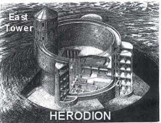 Located 7.5 miles south of Jerusalem The Herodion is a 197 foot high artificial mountain shaped like a cone to hold a 98 foot high fortress/palace 7 stories high 2,500 feet above sea level built 23-20 BC. An administrative center called Lower Herodion is set at its base.