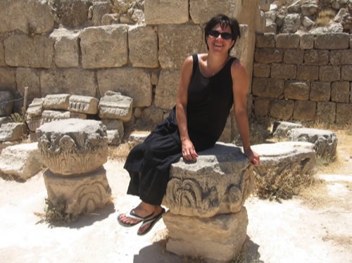 Toni sits on the remains of the Corinthian Capitals that had decorated Herod's palace fortress he called Herodion.