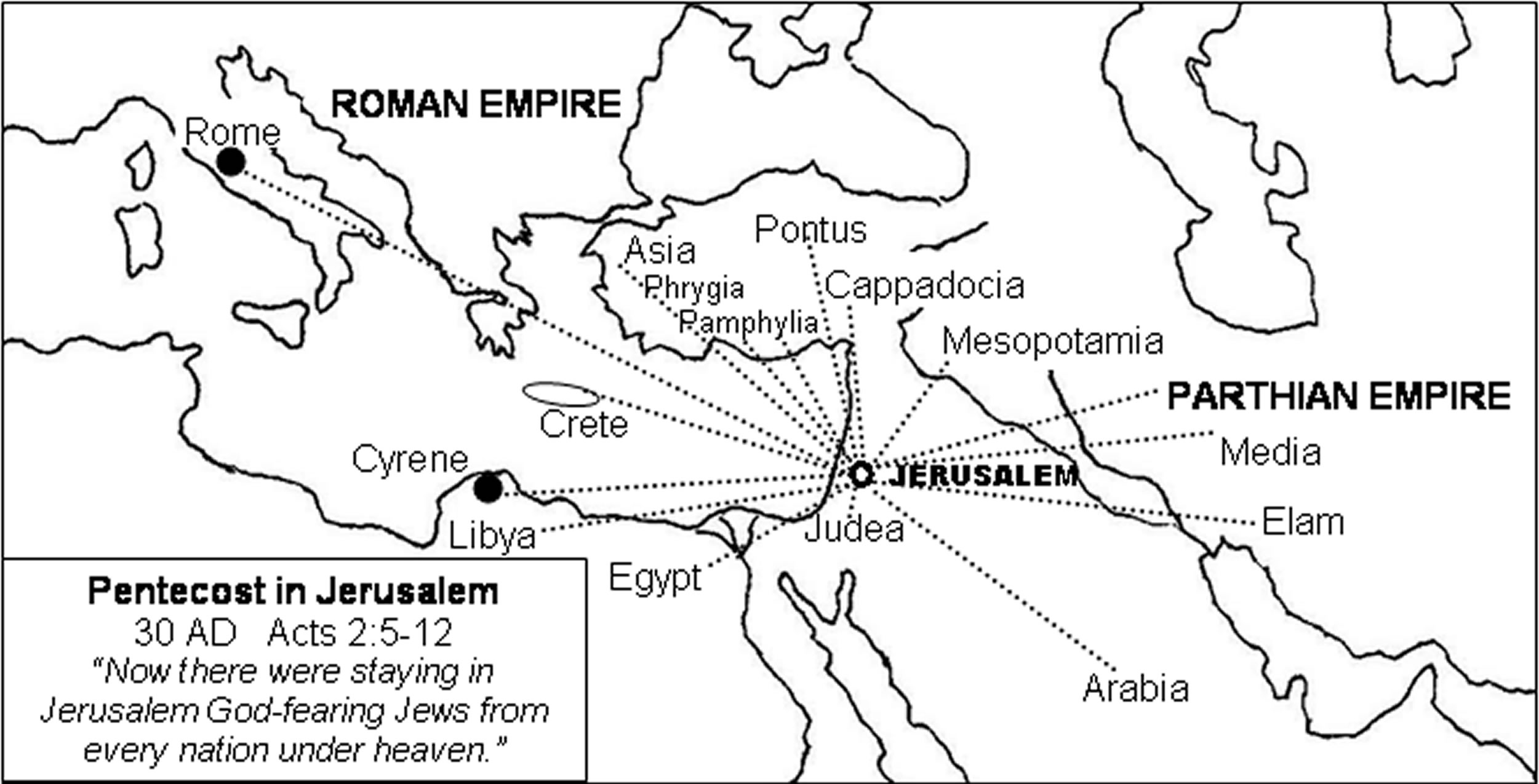 Lands and nations in Jerusalem on Pentecost